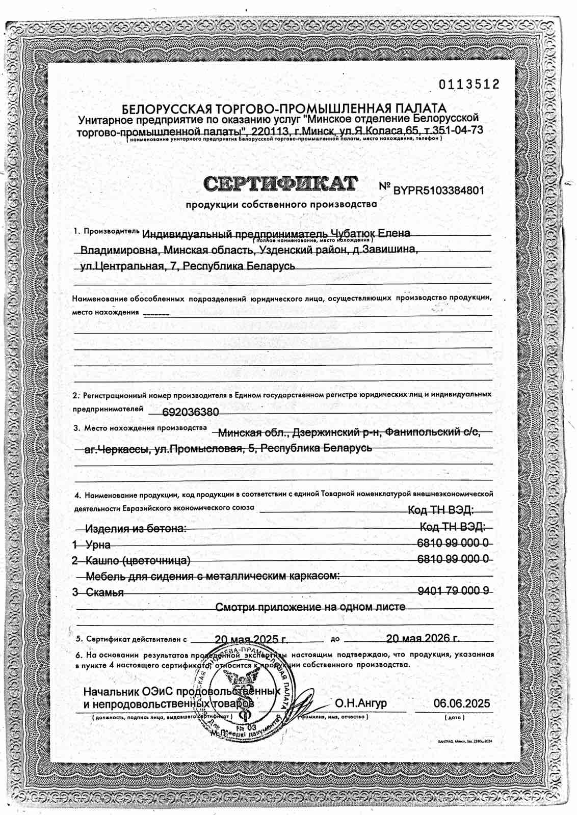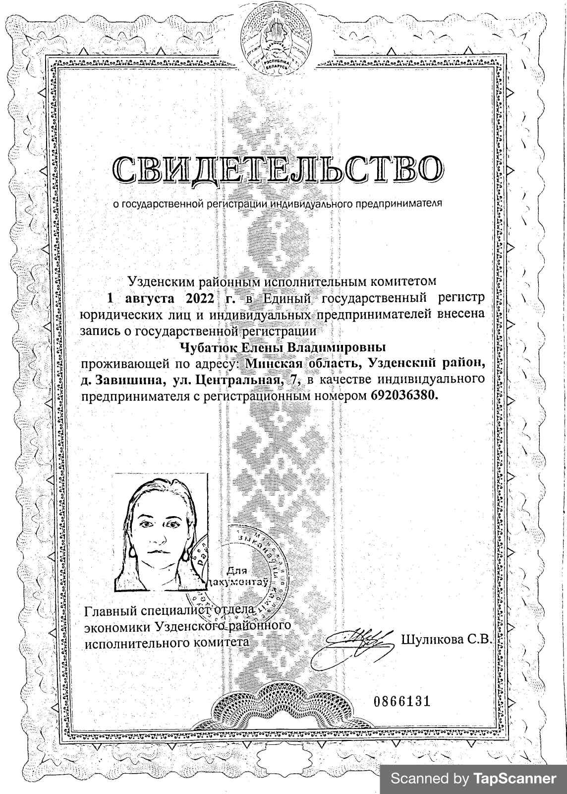 - Свидетельство о регистрации: выдано Узденским районным исполнительным комитетом 1 августа 2022 г.
